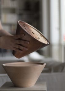 Toucher, soulever, soupeser, retourner et la lumière emplit la pièce. Les dessins s’emparent de l’espace et la chaleur développe l’odeur. La lampe crée une ambiance qui invite à la rêverie, au voyage par l’odeur.